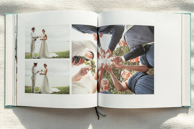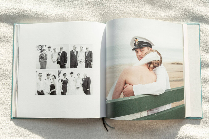This is a contemporary style of wedding album, where the pages run end to end like a book. This allows for the same flexibility as a book, however with the benefits of sturdy, thick pages that lie flat when open.